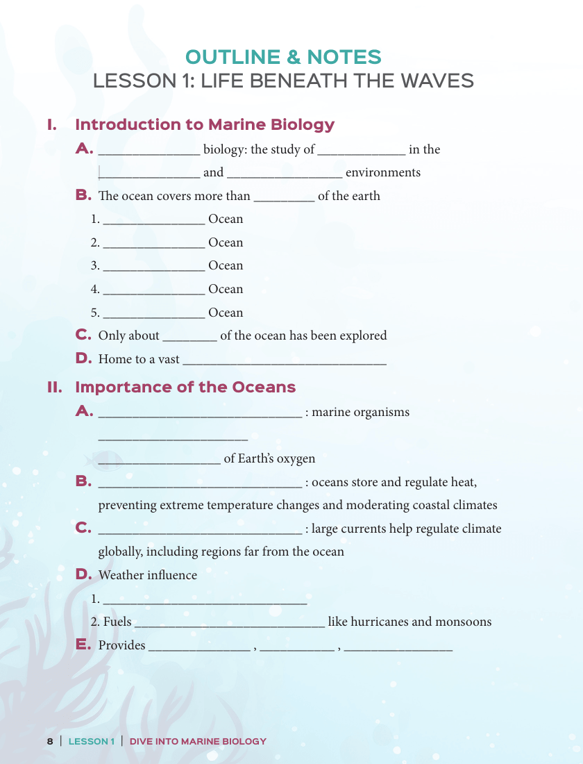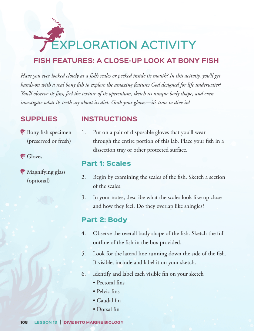 In the junior high and high school years, students can deepen their knowledge of marine biology, and this Explorer’s Handbook can help them as they follow along in the middle school level Dive Into Marine Biology course.